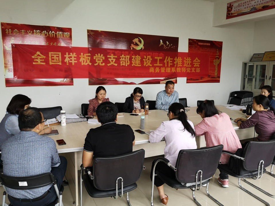 9月29日下午,BB贝博艾弗森官方网站商务管理系教师党支部召开全国样板支部建设工作推进会,学院党委副书记(主持党委工作)廖新平、副院长张美涛、办公室主任王艳、支部全体党员出席了会议。会议由党支部书记龚立恒主持。