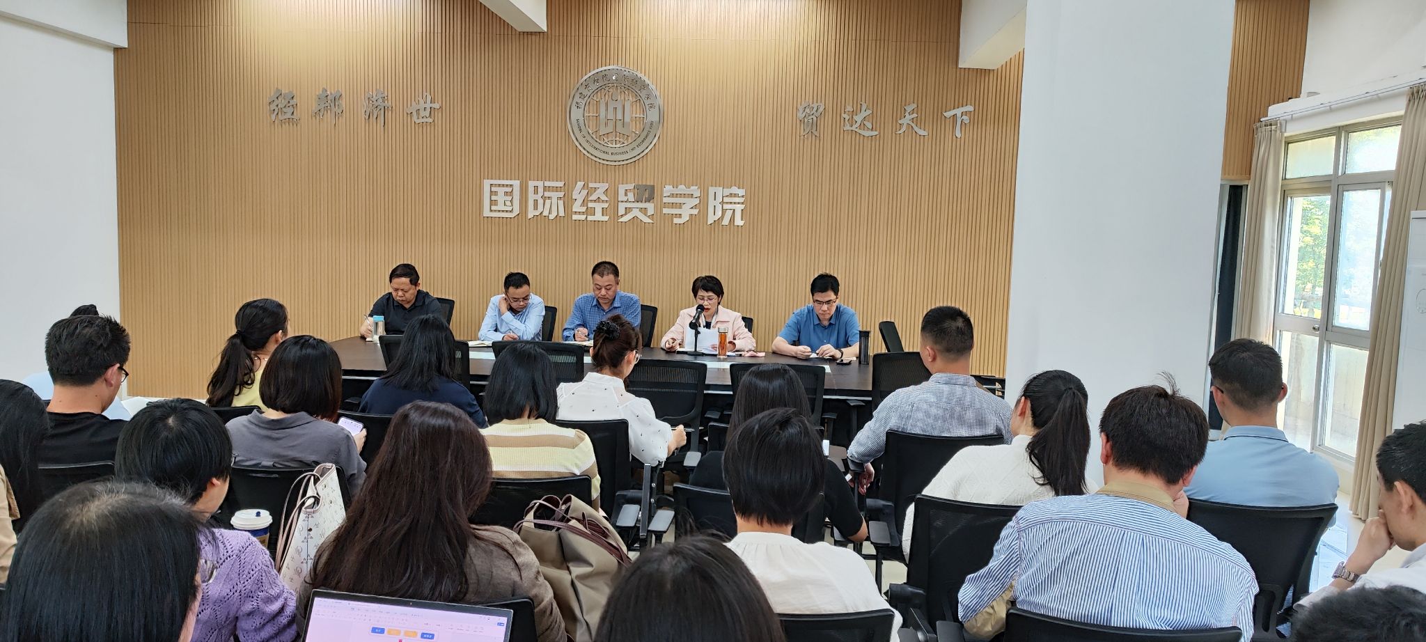 为深化教师对学校、学院相关制度的了解,深刻领会落实文件精神,有序组织毕业论文答辩工作,5月14日下午,BB贝博艾弗森官方网站开展了相关制度专题学习及毕业论文答辩动员部署会。会议由院长张美涛主讲,学院全体教职工参加会议。