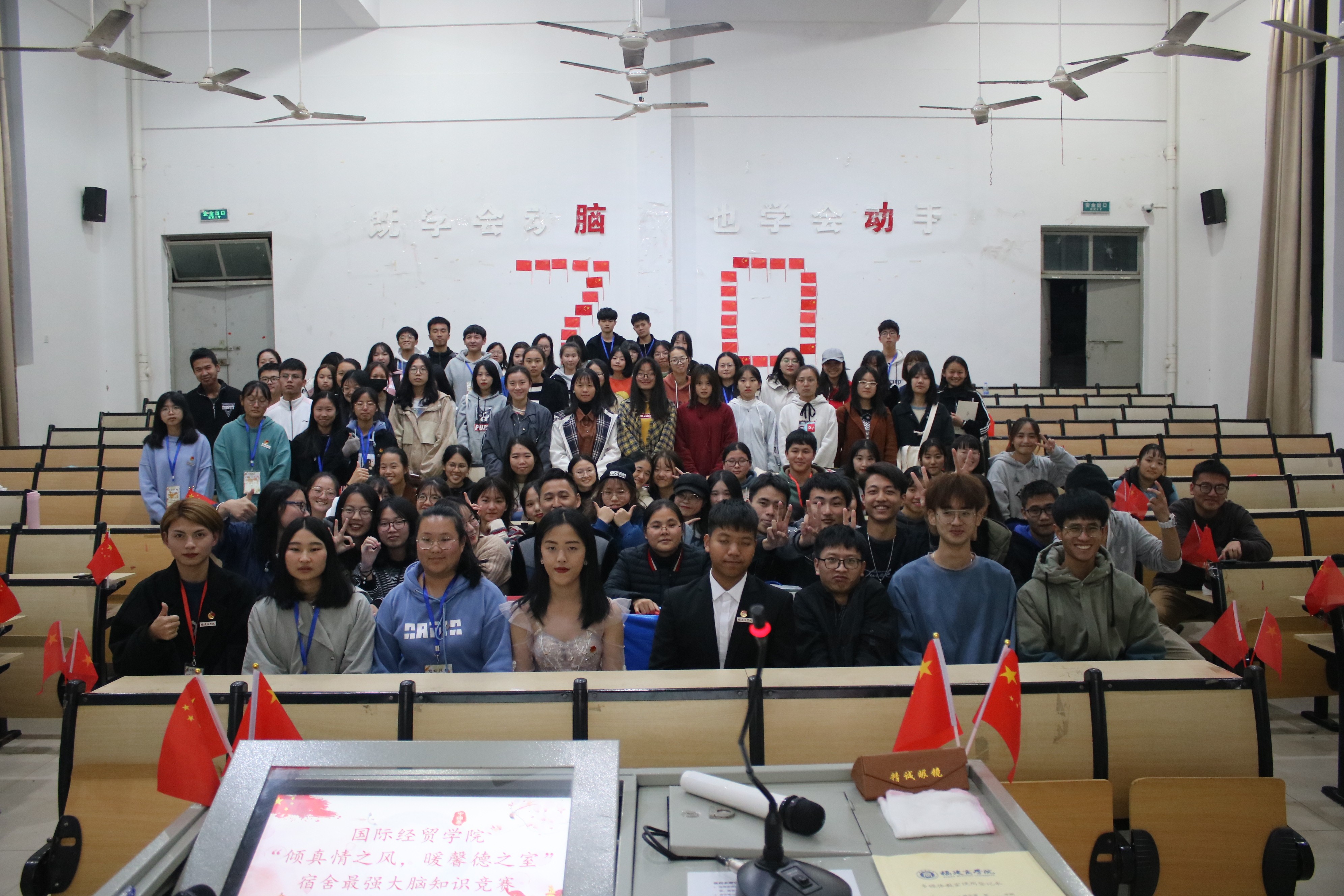 2019年12月2日,BB贝博艾弗森官方网站自律会于马尾校区欧洲厅举办“倾真情之风,暖馨德之室”第二届宿舍文化节系列活动之宿舍最强大脑竞答活动。BB贝博艾弗森官方网站国贸系学生党支部书记吴炎敏、自律会指导老师郑亚梅、参赛宿舍以及各班代表参加了此次活动。