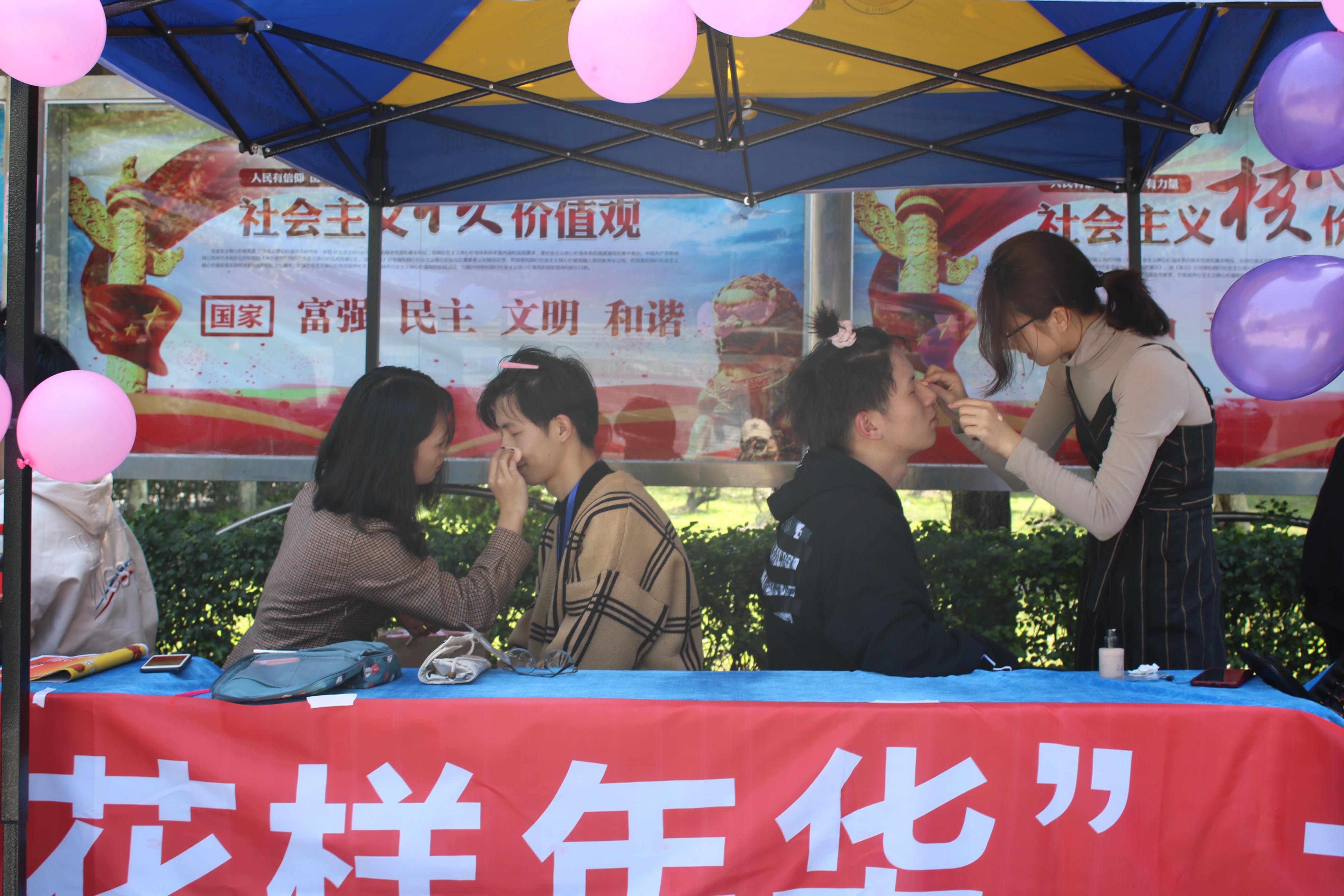 于 3月12日中午12点30分,由国际经济与贸易系团总支主办,女生部承办的“绚烂季节 花样年华”彩妆大赛在食堂门口活动空地举行。此次比赛面向国贸系的全体同学。