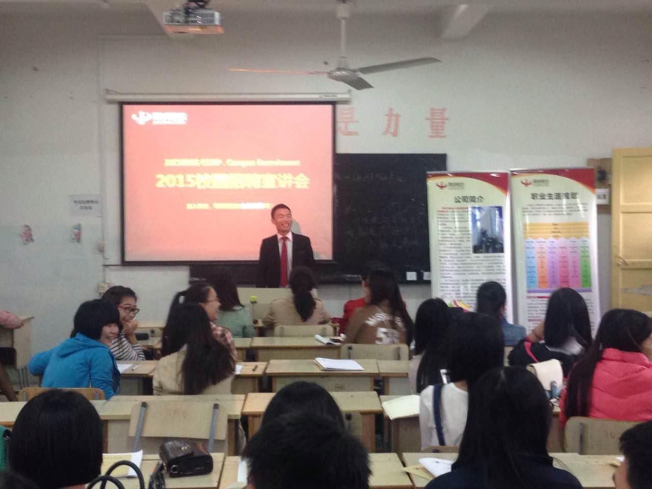 为做好2016届毕业生就业工作,满足用人单位对优秀人才的需求,拓宽毕业生就业渠道,经济贸易系于2015年11月10日分别在湖前校区、软件园校区成功举办了2016届毕业生招聘宣讲会,本次宣讲会获得了圆满成功。