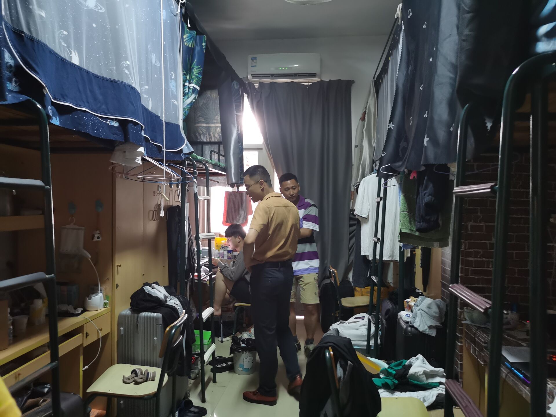 值此端午节假期来临之际,为增强学生安全意识,营造平安和谐的宿舍环境,2021年6月9日中午12:30,BB贝博艾弗森党委许模春副书记带领辅导员及自律会干事,对BB贝博艾弗森学生宿舍进行安全隐患排查。