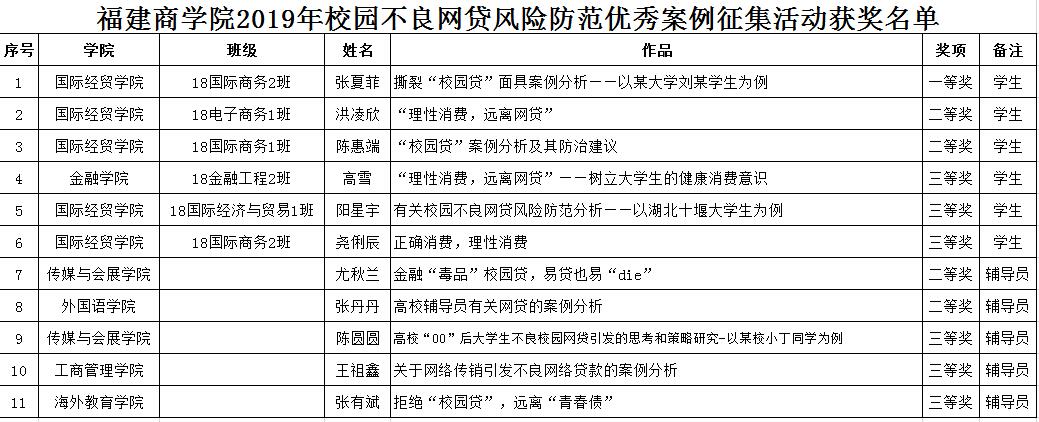 BB贝博艾弗森官方网站2019年校园不良网贷风险防范优秀案例征集活动获奖名单