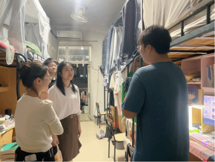 本次检查重点排查卫生死角、违规电器使用、私拉乱接电线等问题。检查中发现,大部分宿舍卫生状况较好,不存在违规电器及乱拉电线等问题。但个别宿舍存在电器插头未拔、杂物堆积、门口垃圾堆积等现象,检查组现场提出整改要求并督促整改。检查过程中,方霞副书记与学生亲切交流,叮嘱大家要注意公共空间卫生、定期通风换气,养成良好用电习惯,不使用违规电器,共同营造安全、整洁的宿舍环境。