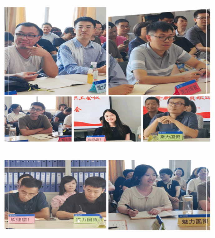 学院今年迎来了人才引进“大丰收”,有博士引进生、高层次博士人才、储备人才及辅导员等各类教师共计9人。在新进教师欢迎会上,会议桌上摆放“活力国贸”、“聚力国贸”、“潜力国贸”、“给力国贸”等特色欢迎桌牌,新进教师被邀请前排就坐,学院班子成员代表学院对新进教师加入大家庭表达了最诚挚的欢迎。院长张美涛介绍了学院的基本情况,指出学院始终坚持把人才队伍建设作为基础性、战略性工作,希望新进教师尽快熟悉情况,为学院的高质量发展注入“新鲜血液”。新入职的教师依次进行了自我介绍,纷纷表示感受到了学院温情热情的工作氛围,将立足本职岗位,为学院发展贡献自己的一份力量。
