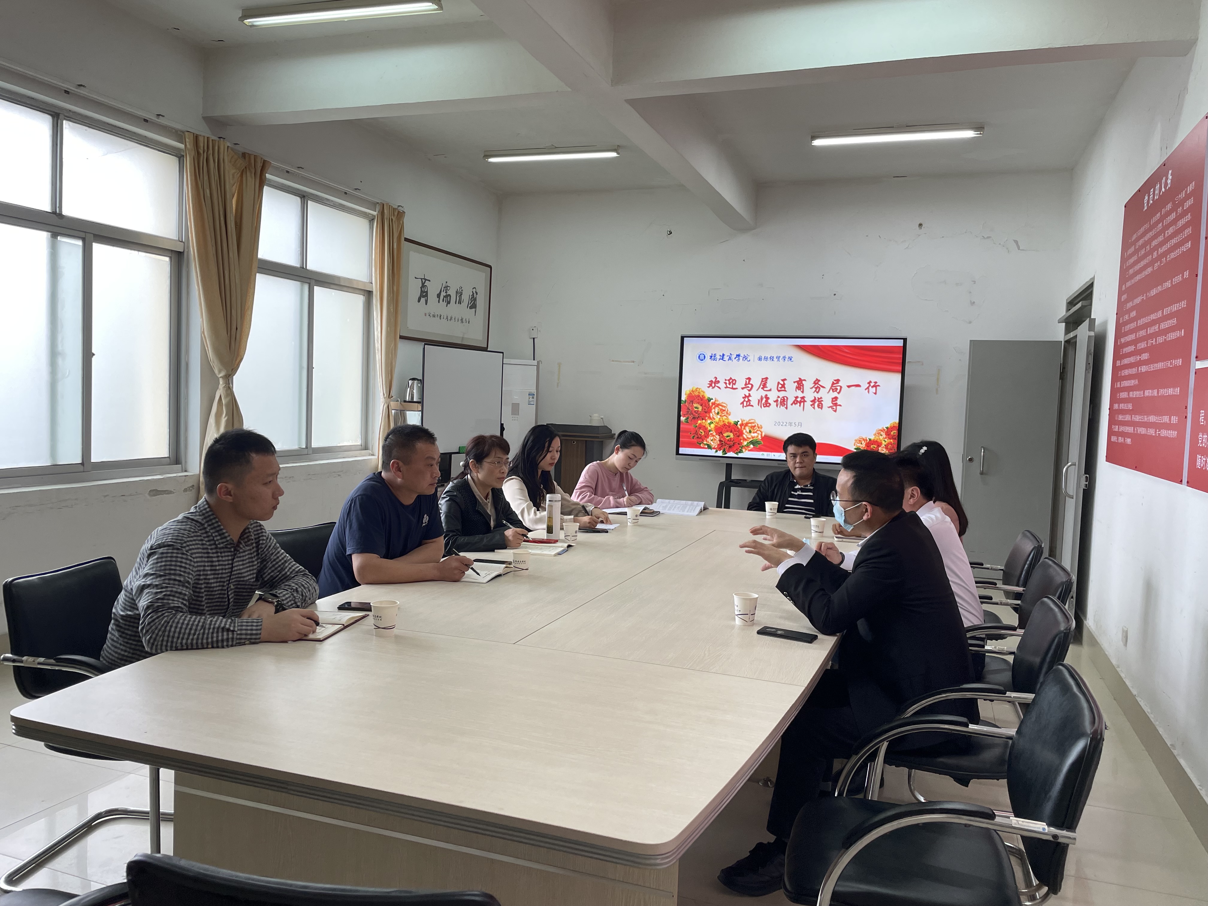 5月26日下午,马尾区商务局、福建佳客来食品股份有限公司一行赴BB贝博艾弗森开展校企合作洽谈。马尾区商务局运行办主任范丽月、福建佳客来食品股份有限公司董事长张建仙、学院院长张美涛、党委书记廖新平、办公室主任王艳、电子商务系主任李民、团学办负责人王祖鑫及毕业班辅导员代表林明参加会议。