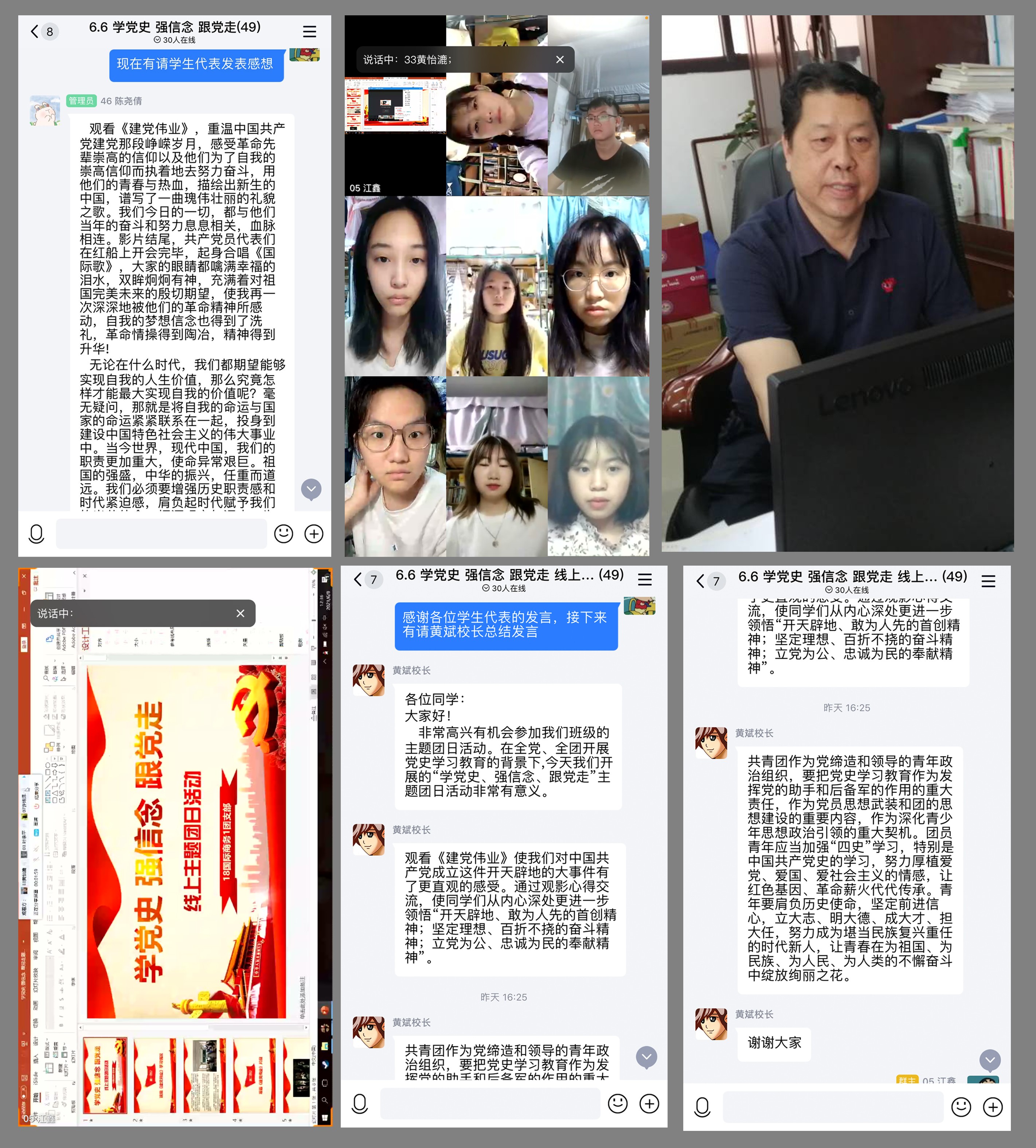 为深入开展党史学习教育,进一步推进“永远跟党走”群众性主题宣传教育活动,6月6日,黄斌校长“走进”2018级国际商务1班,与BB贝博艾弗森官方网站老师们一起参加该班级线上主题团日活动。