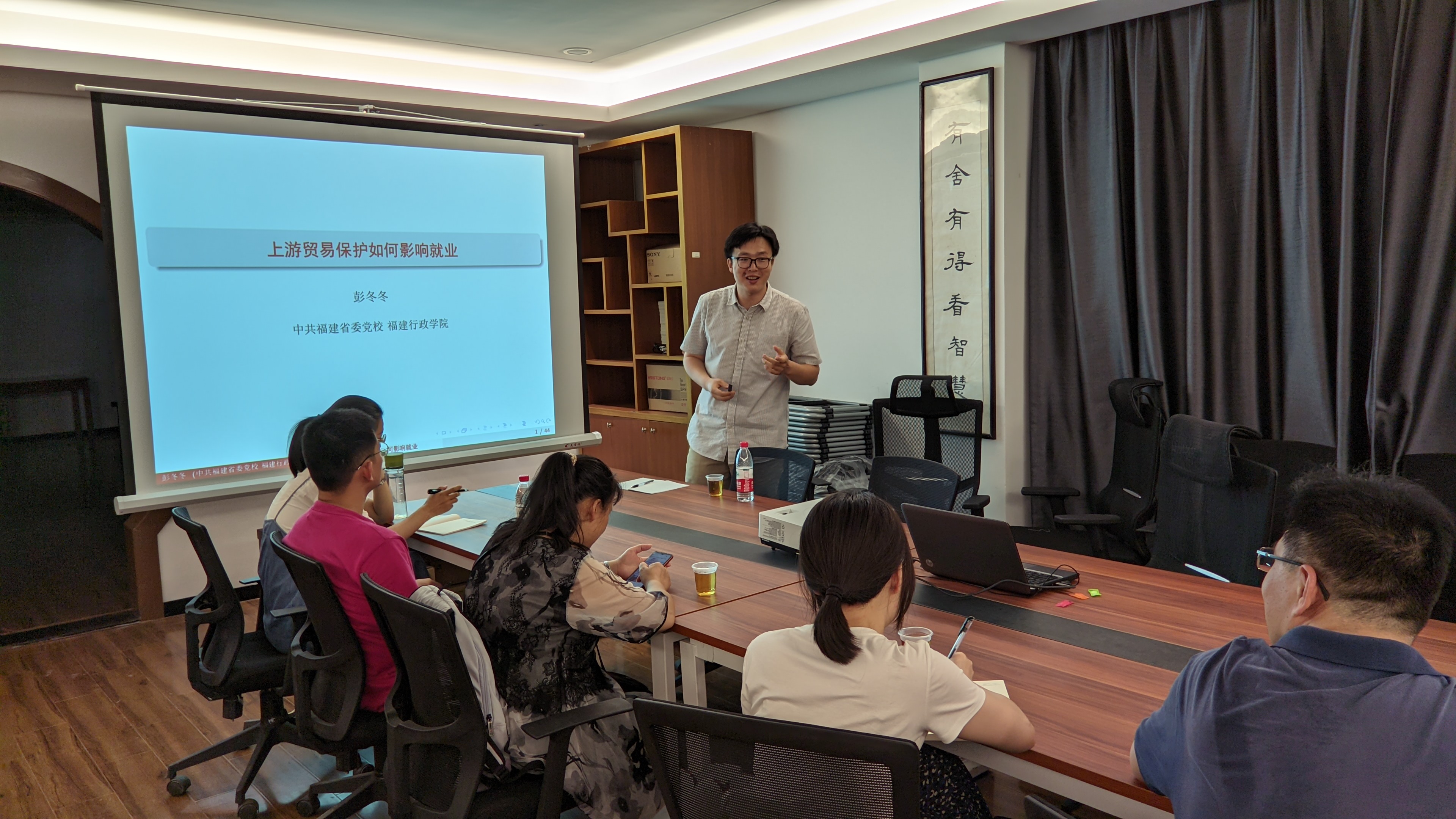 中共福建省委党校 福建行政学院彭冬冬(博士/副教授)担任主讲嘉宾,分享了主题为“上游贸易保护如何影响就业”的学术研究。彭博士从写作动机、理论分析、实证检验及基本结论四个方面展开论述,通过理论模型推导、计量模型选取,变量与数据的分析、检验,阐述了上游贸易保护对就业显著的抑制作用,以及提高中间品购进成本是抑制作用发挥的重要渠道等研究结果,给我们展示了一个典型、标准的现代国际贸易与经济学的研究范式。