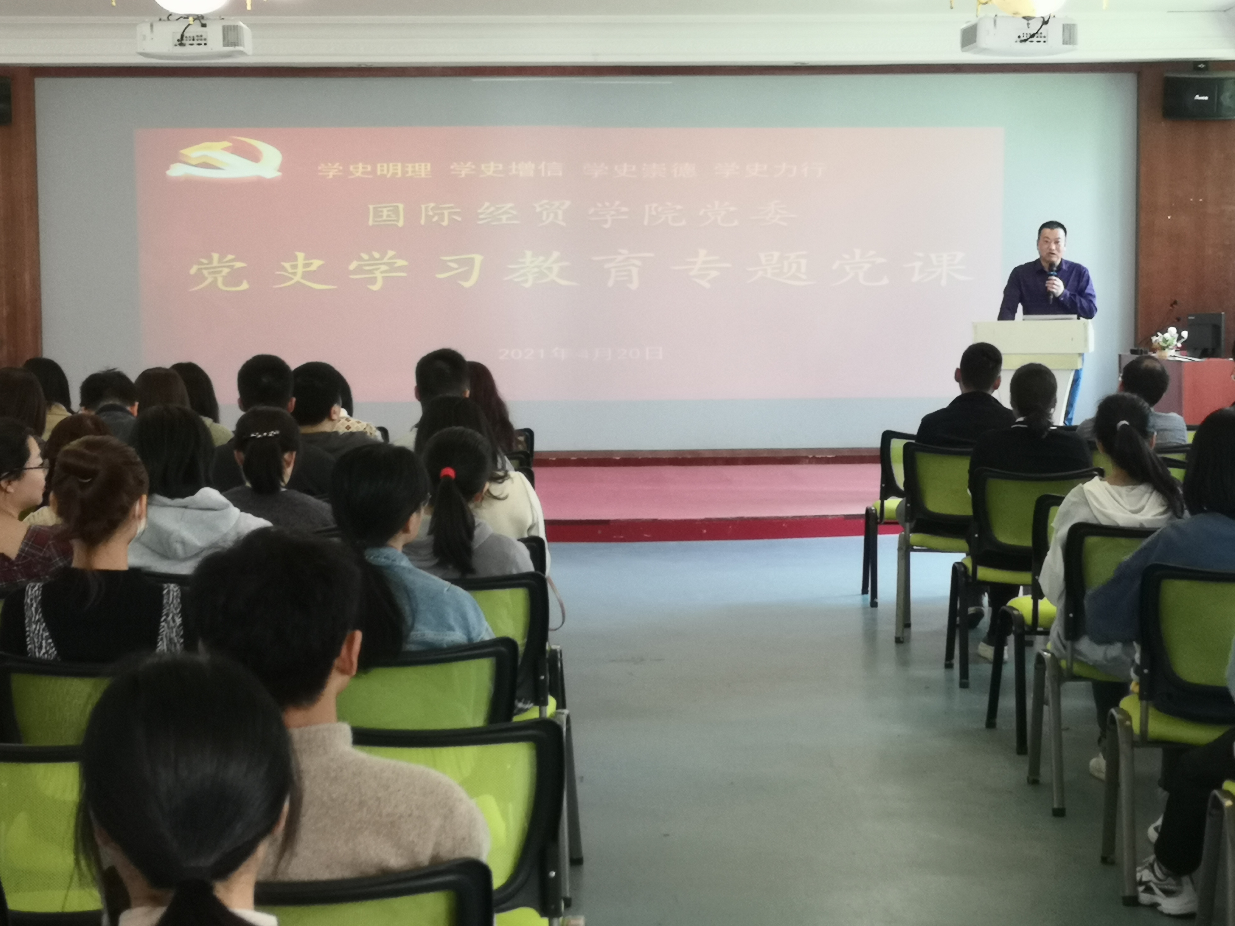 4月20日,BB贝博艾弗森官方网站党委举行党史学习教育专题讲座,主持党委工作的副书记廖新平作了“为什么加入中国共产党”的辅导报告。学院党政班子成员、全体在校的师生党员共100余人参加了教育活动。