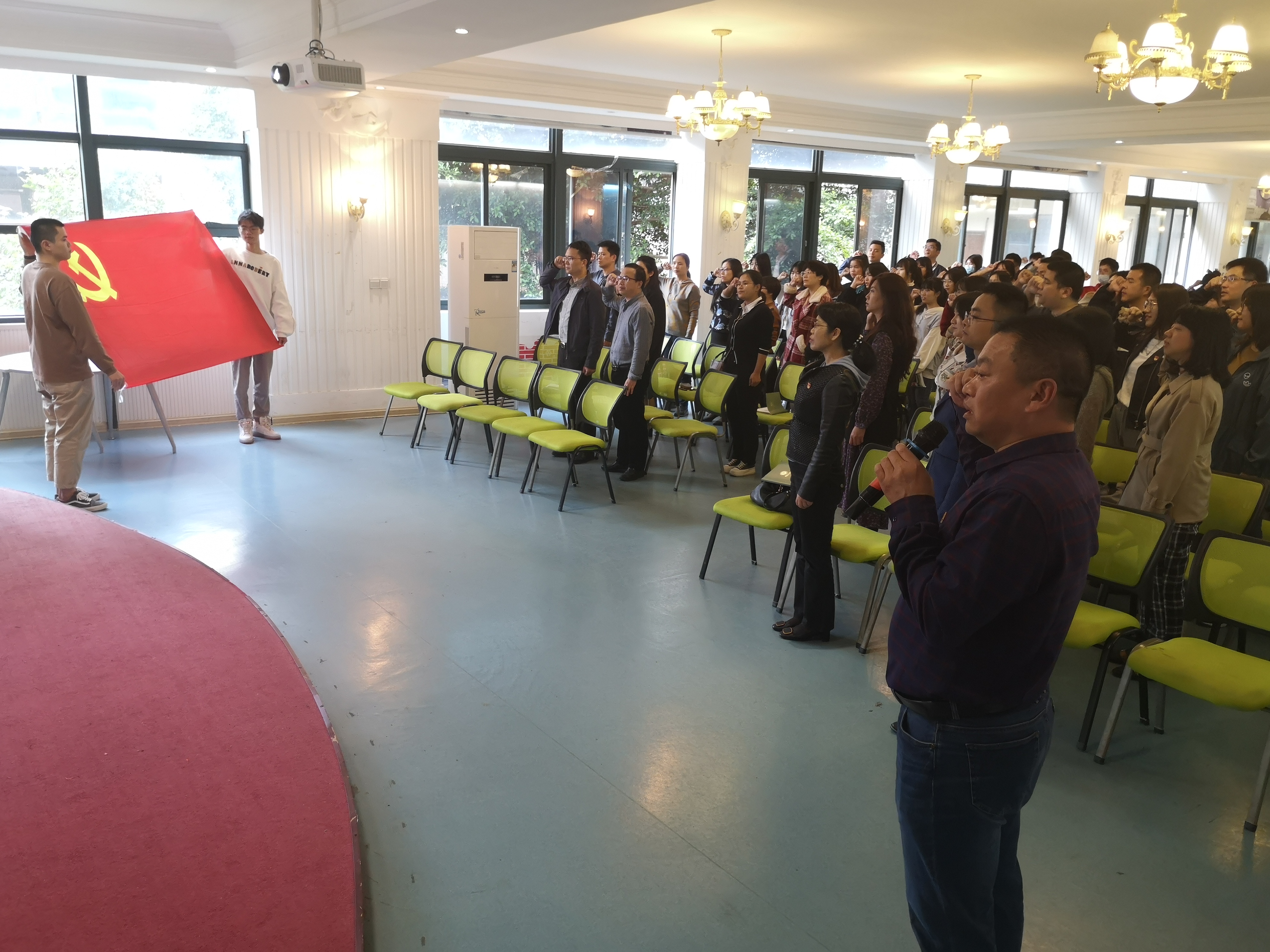 讲座结束后,全体党员同志重温了入党誓词,回忆党组织的培养历程,强化党员宗旨意识,表达不忘初心、牢记使命,砥砺奋进的信心和决心。