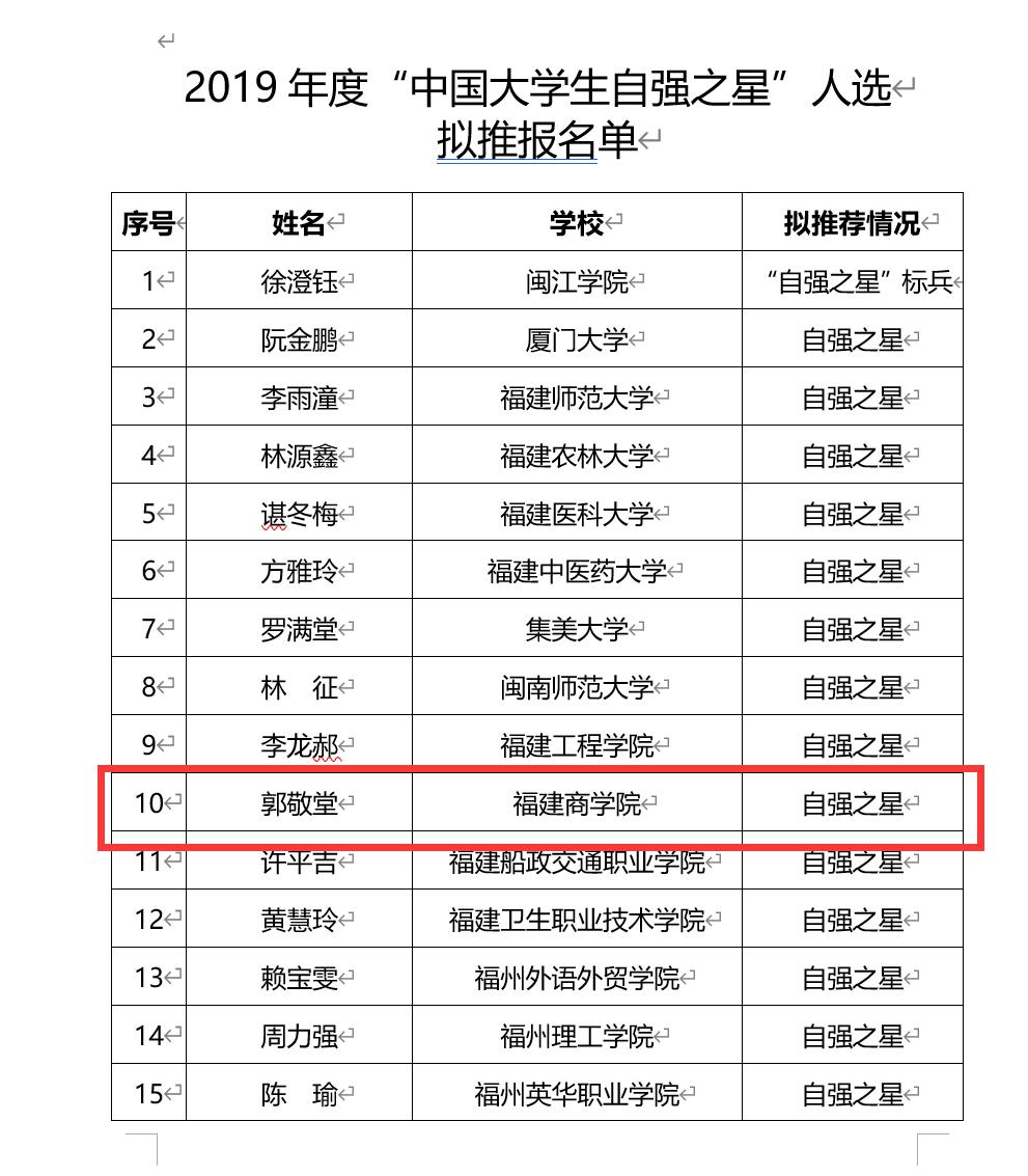(2019年度“大学生自强之星人选名单公示”网址: www.fjcyl.org/web/news/get?id=202008041026987&columnType=1004&zb=4&tdsourcetag=s_pcqq_aiomsg)