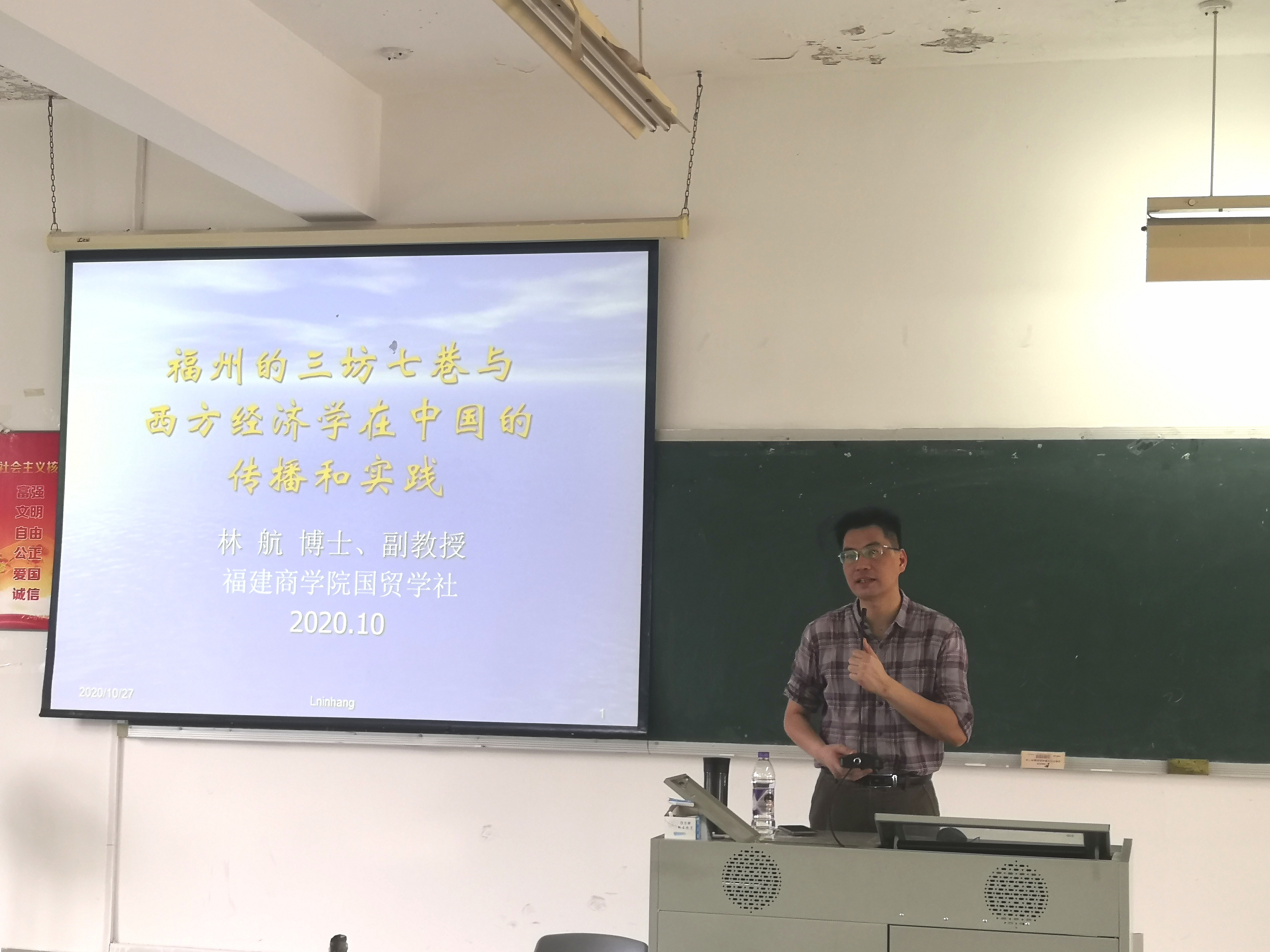 10月27日下午,由BB贝博艾弗森官方网站BB贝博艾弗森官方网站国贸学社举办的“BB贝博艾弗森官方网站博士教师系列讲座”之首期讲座—“福州的三坊七巷与西方经济学在中国的传播与实践”在远志楼T3开展。BB贝博艾弗森博士林航副教授为主讲人,国贸学生全体社员、相关师生参加讲座。