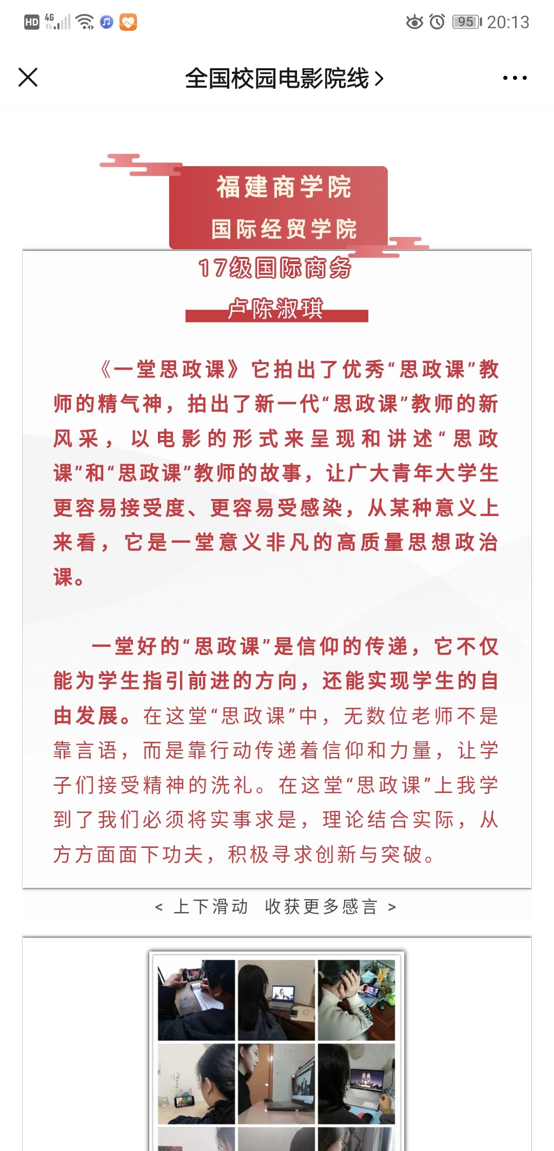 全国校园电影院线公众号选登BB贝博艾弗森学生《一堂思政课》观后感