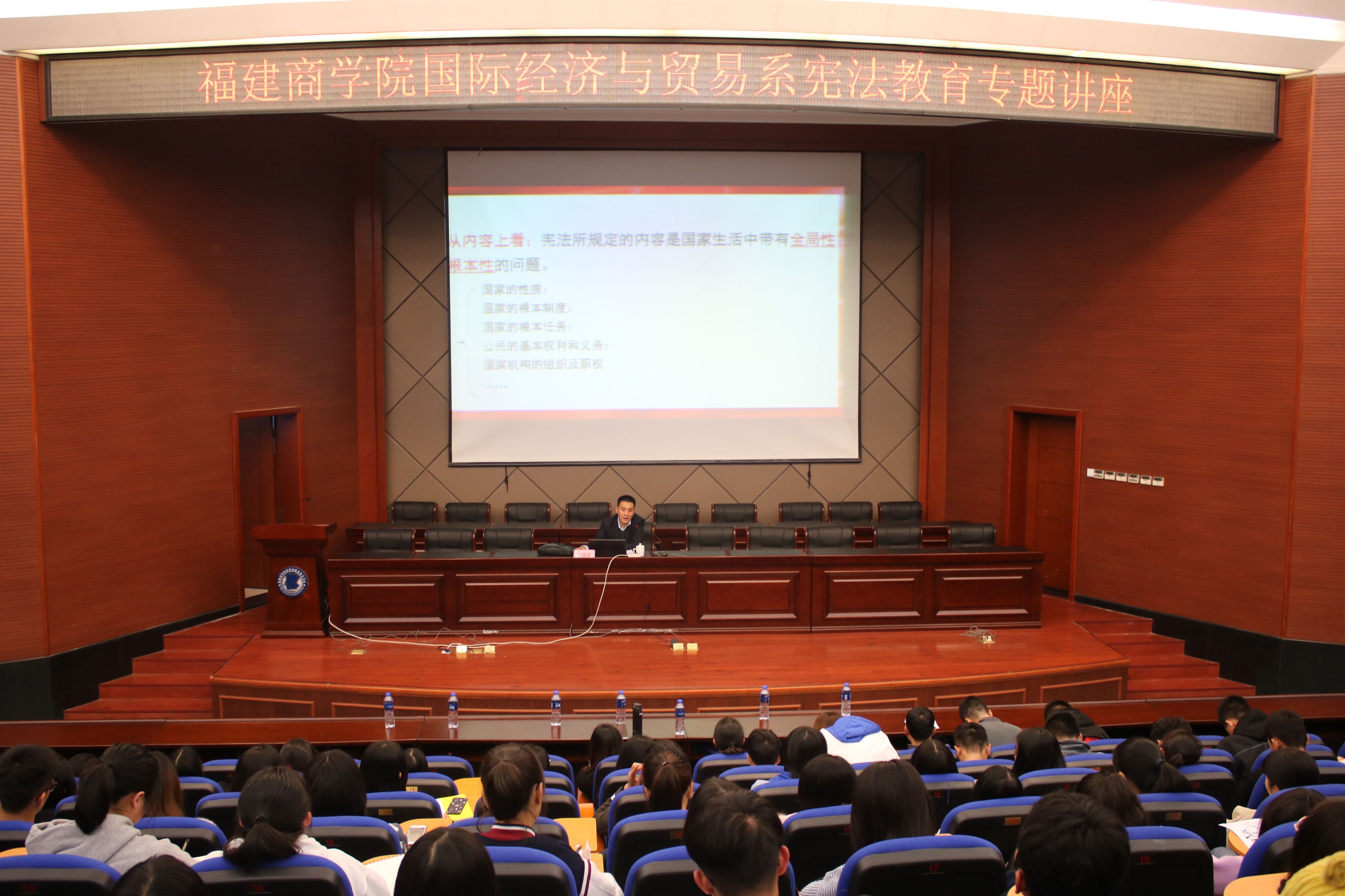我系于2018年12月11日下午两点在学术报告厅举行 “学宪法、讲宪法”专题讲座,我们有幸邀请到福建工程学院吴贤军副教授为我们开展这次的讲座,参会人员有我系全体辅导员以及我系学生代表。本次专题让师生进一步了解和学习宪法知识,严格遵守宪法,以及增强大家对法制安全的认知能力,加强对青少年的思想政治教育,提高维护安定社会的自觉性。