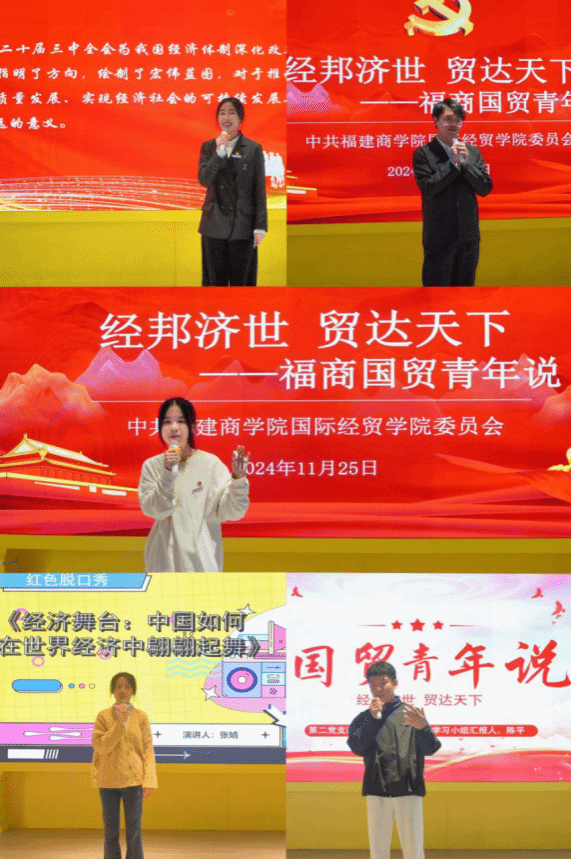 为深入学习贯彻党的二十届三中全会精神,学习全会关于推动经济体制改革、对外开放等方面内容,11月25日,BB贝博艾弗森官方网站举办“经邦济世 贸达天下——国贸青年说”红色脱口秀。