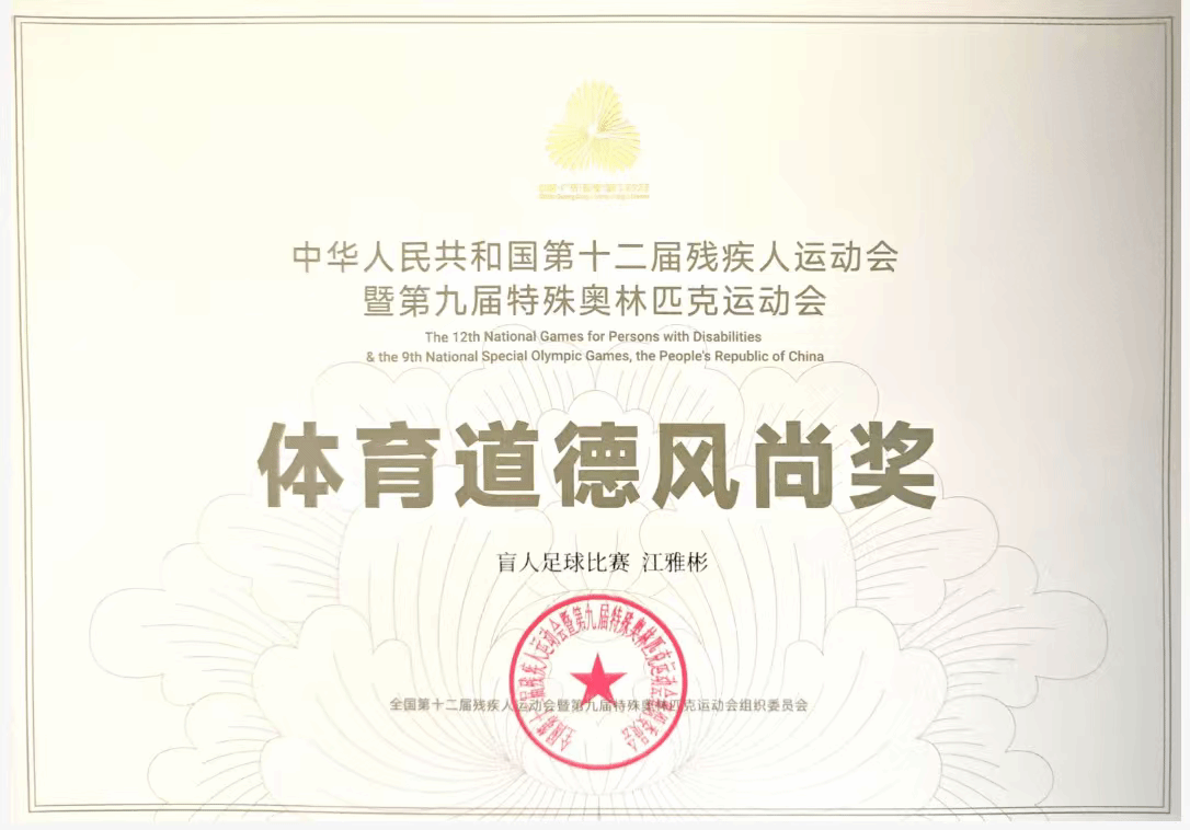 12月7日-15日,全国第十二届残疾人运动会暨第九届特殊奥林匹克运动会盲人足球比赛在广州举行。本届赛事首次设立女子盲人足球项目,我校李进老师担任福建省女子盲人足球队主教练,BB贝博艾弗森官方网站2023级国际经济与贸易2班江雅彬同学担任主力守门员,助力队伍夺得赛事铜牌。福建省女子盲人足球队荣获集体全国体育道德风尚奖,江雅彬同学荣获个人全国体育道德风尚奖。