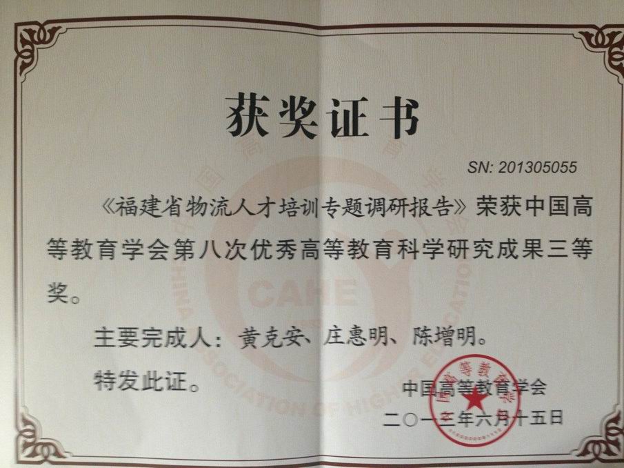 中国高等教育学会第八次优秀高等教育科学研究成果三等奖
