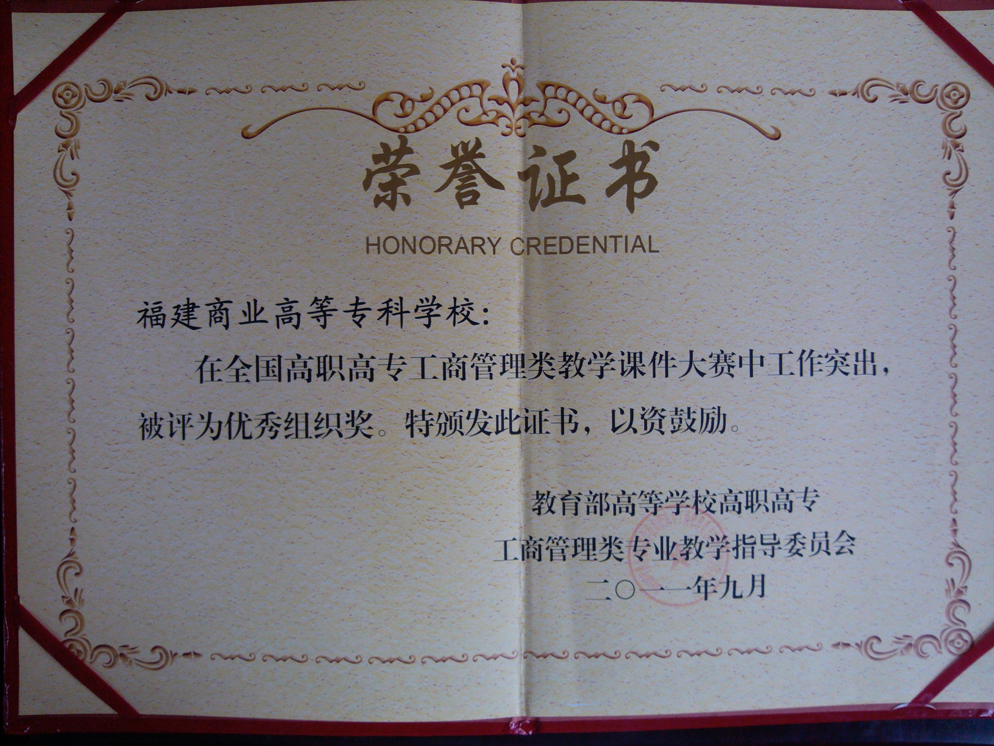 全国高职高专工商管理类教学课件大赛优秀组织奖
